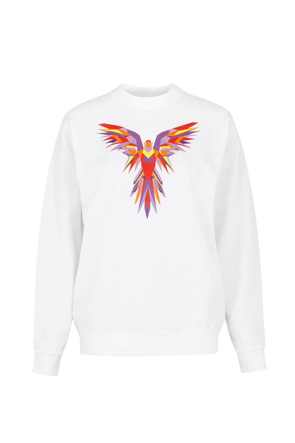 Er du til et casual look vil den lækre sweatshirt med en farverigt papegøje lige være dig, passer perfekt sammen med både jeans eller en lang farverig nederdel.