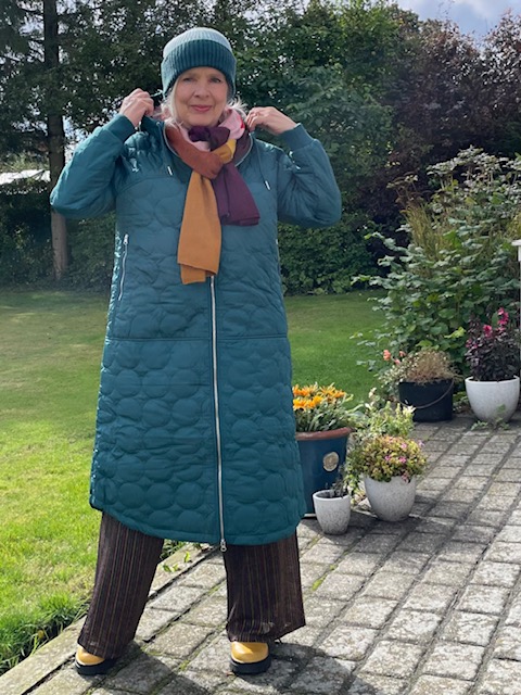 Hætten kan justeres med snøre. Ærmerne afsluttes med ribkant, som stopper vinden.