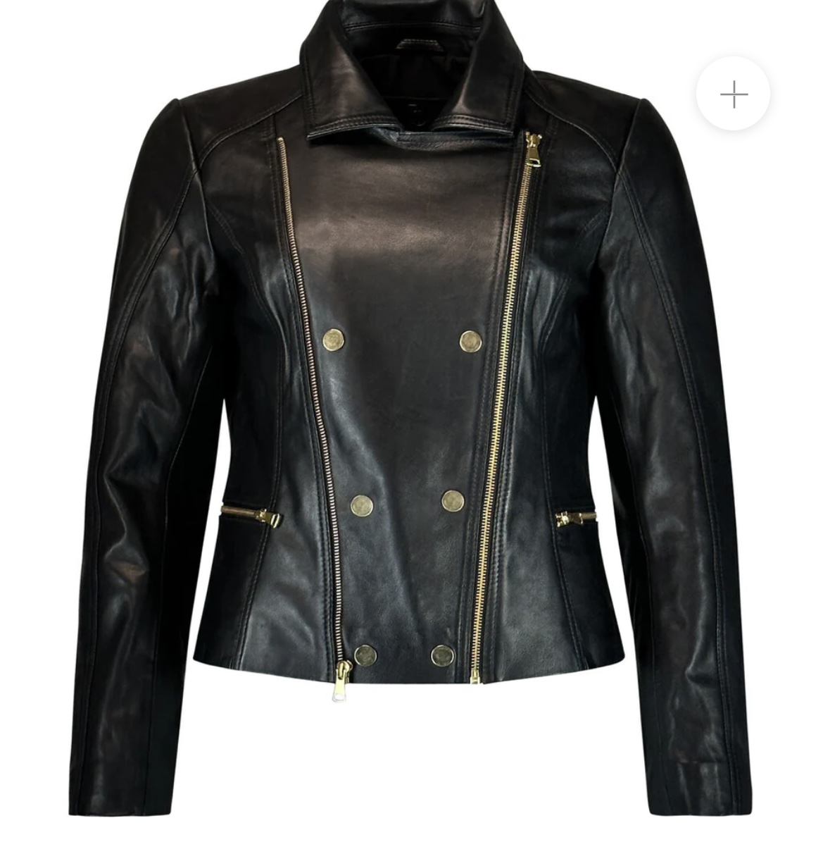 Skind jakke med guld tryk knapper