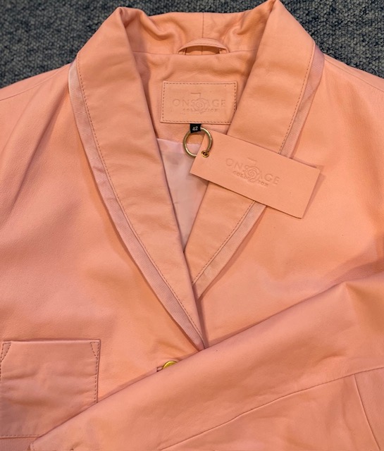 - denne jeakke er meget sart lyserød men skind er nogle gange svære at gengive på fotots. derfor er billedet med tasken på den faktiske farve.