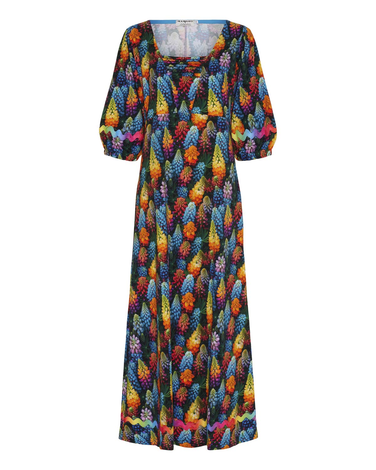 - Maxi kjole med det smukkeste Lupin blomster print
