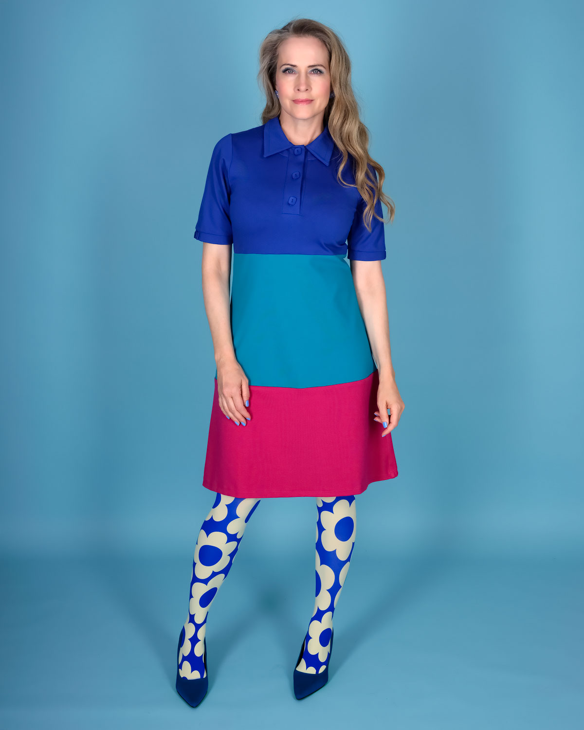 - Kjole med flotte blok farver
