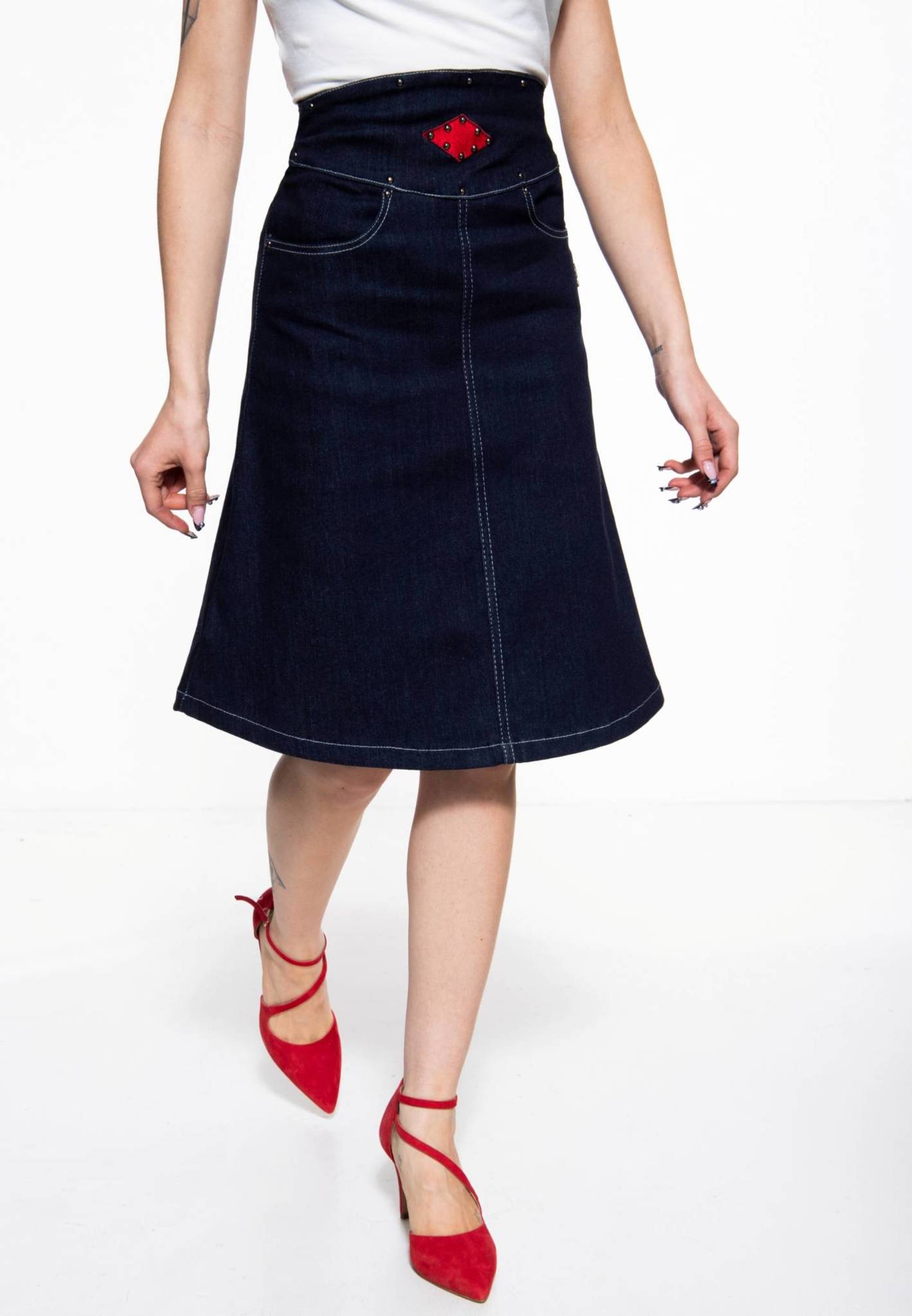 A facon denim nederdel