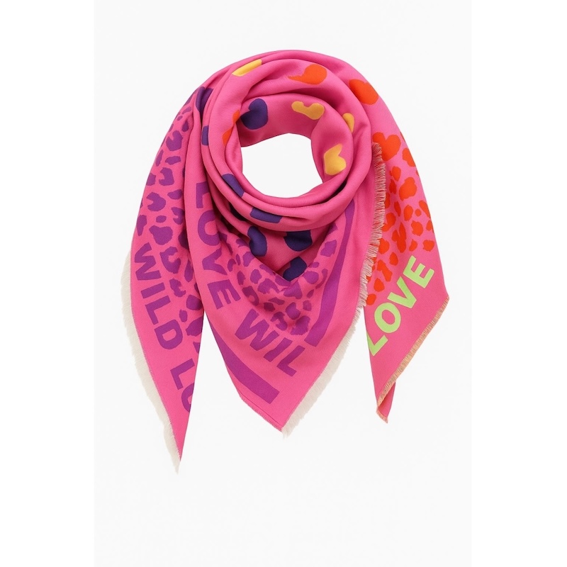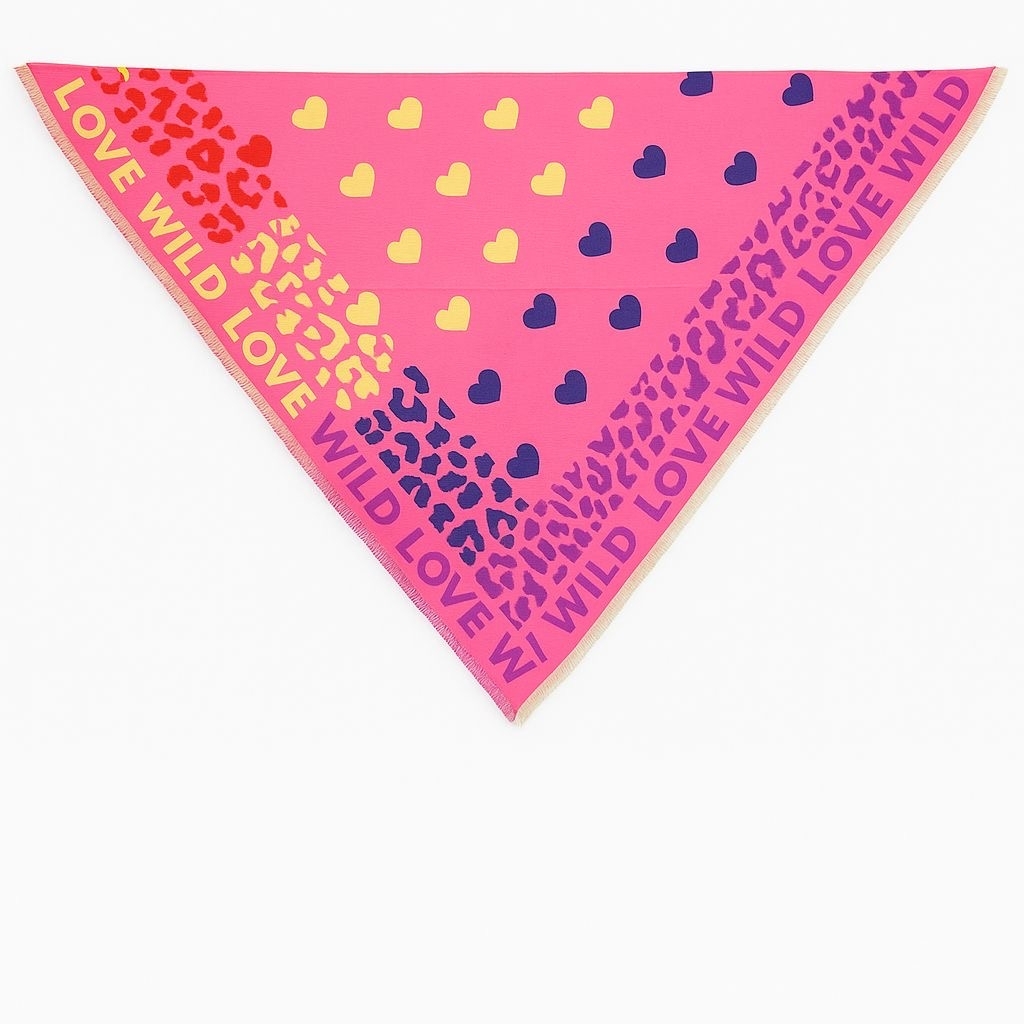 - Trekantet tørklæde med hjerter og leo mix print