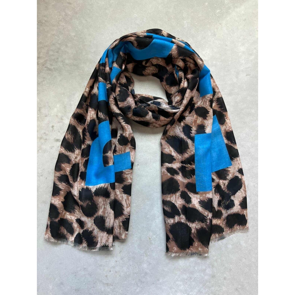 - Aflangt tørklæde med leopard print og pink Love skrift